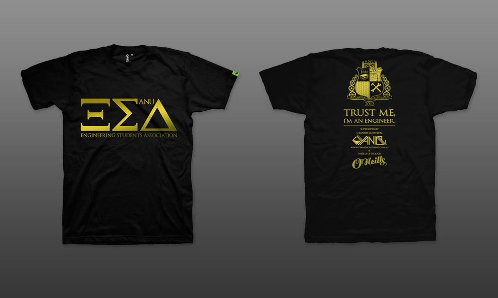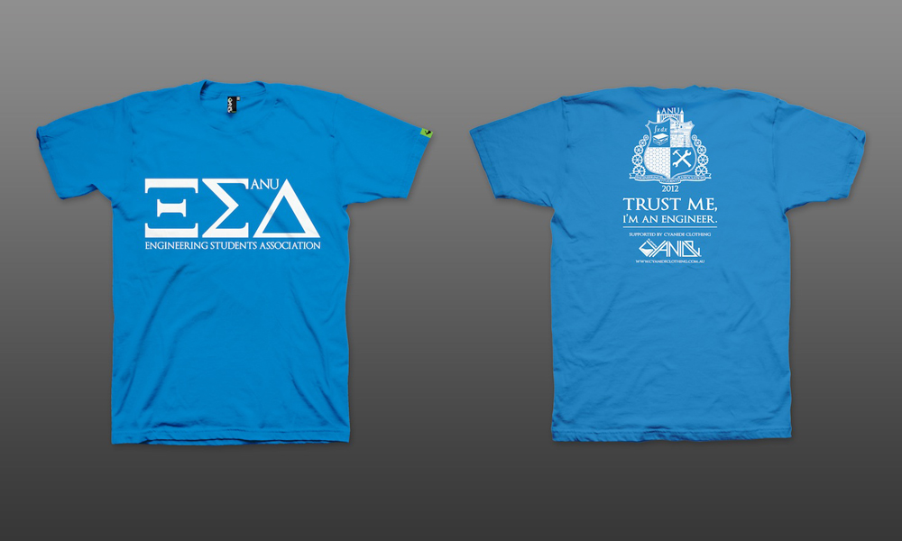 This project involved the design and production management of various t-shirts for the Australian National University Engineering Students Association (ANUESA).