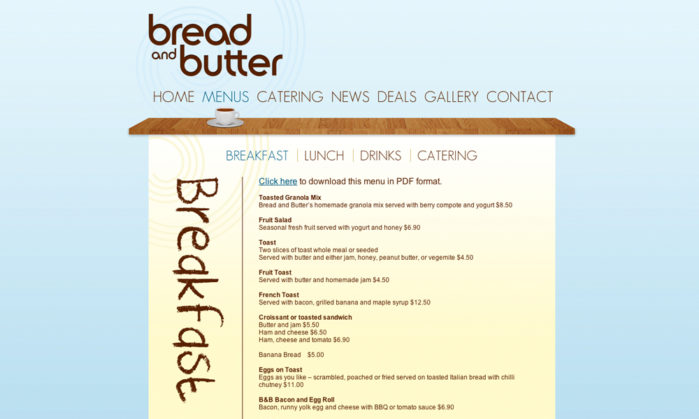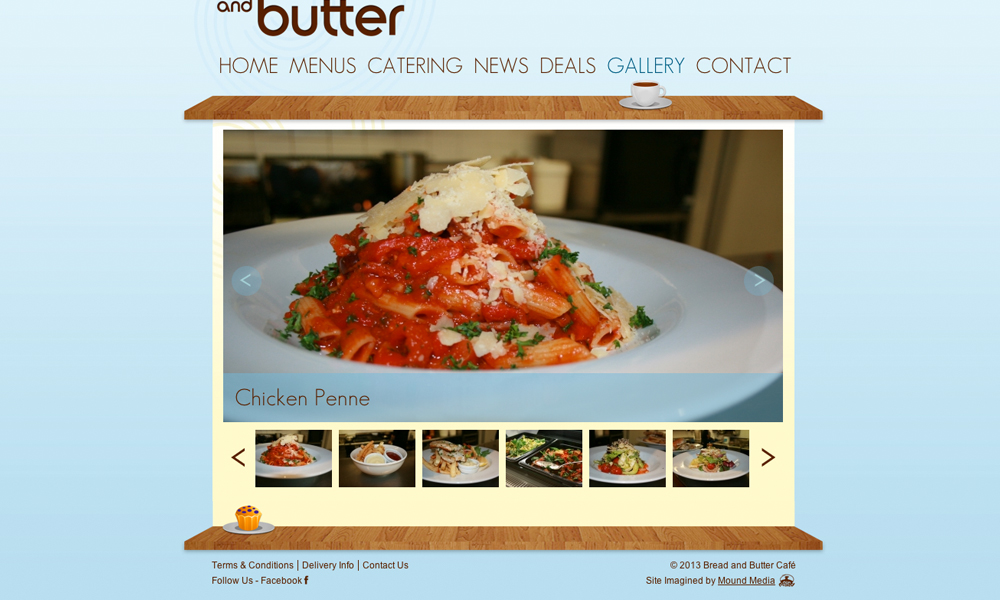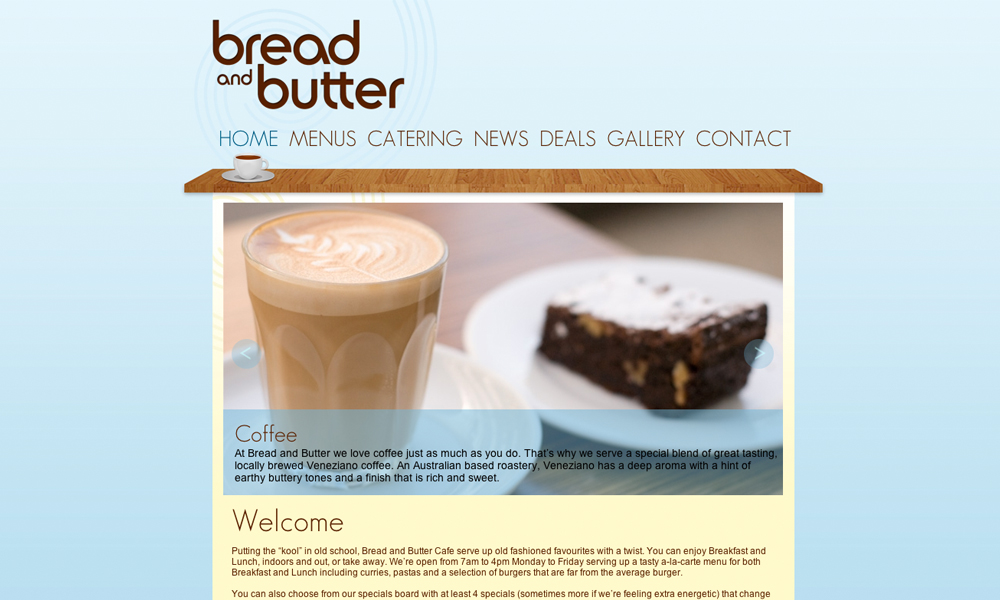 Bread and Butter Cafe provides old fashioned service with a twist. This poject involved design and development of the website including an online catering system, gallery and menus.
