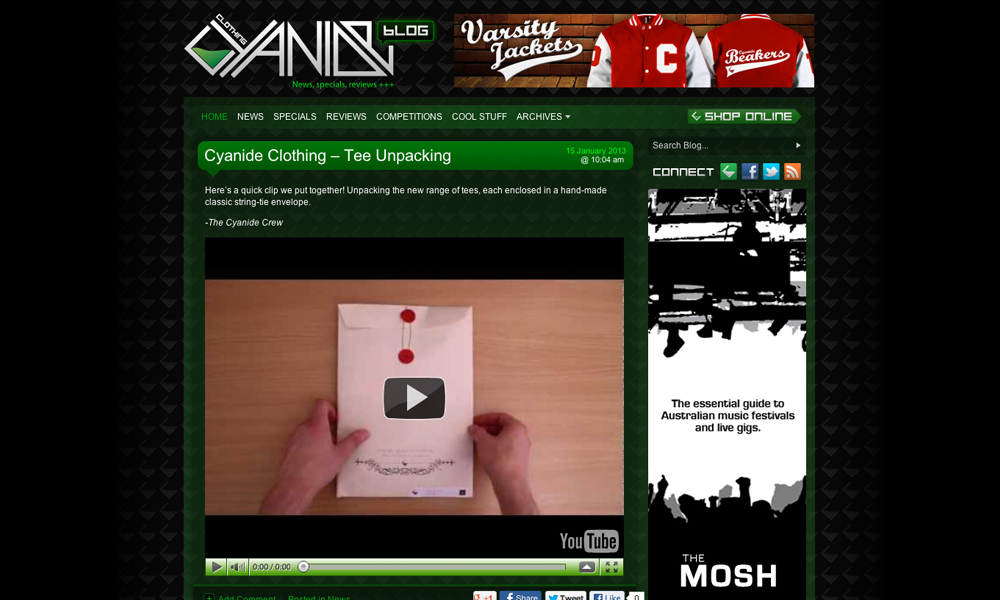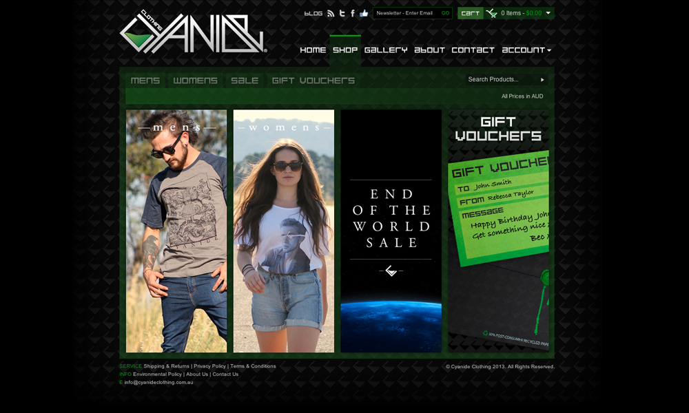Cyanide Clothing is an Australian streetwear clothing brand. This project involved full design and development of the frontend and backend of a complex eCommerce website and blog.