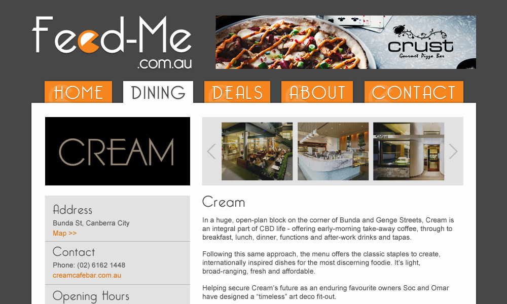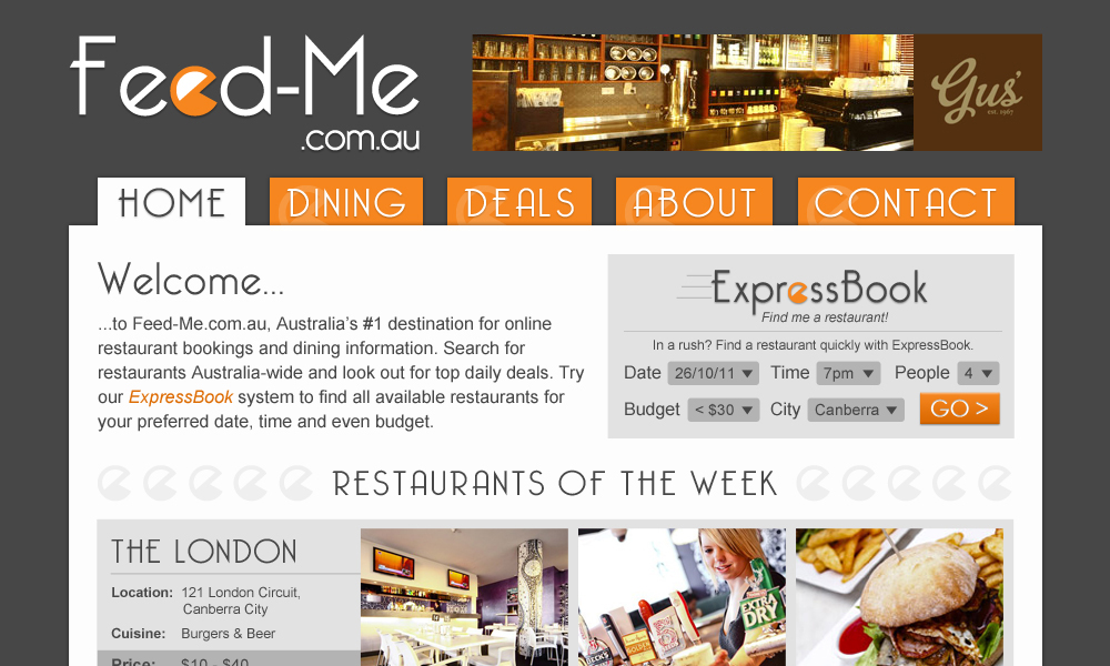 FeedMe is a concept website for a restaurant booking and dining information site. This project included the graphic design of the website interface.