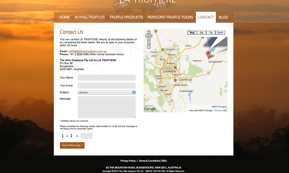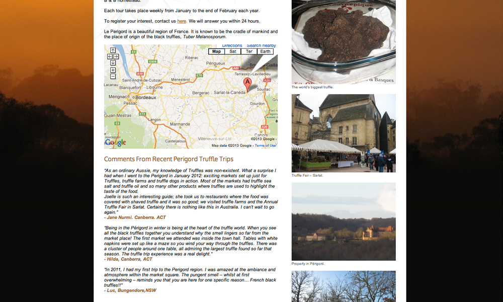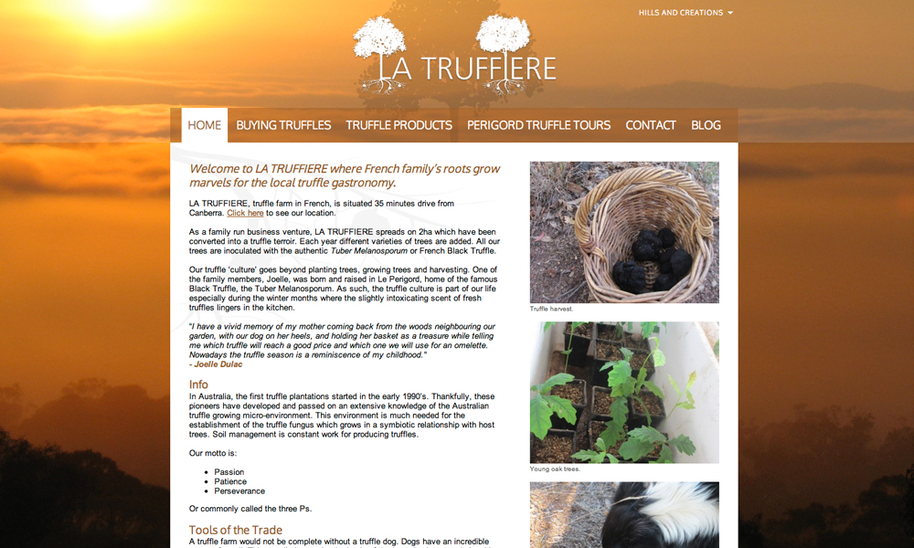 Hills and Creations offers truffles, gourmet food and B&B accommodation. This website included full design and development of 3 sub-sites for each subsidiary business.