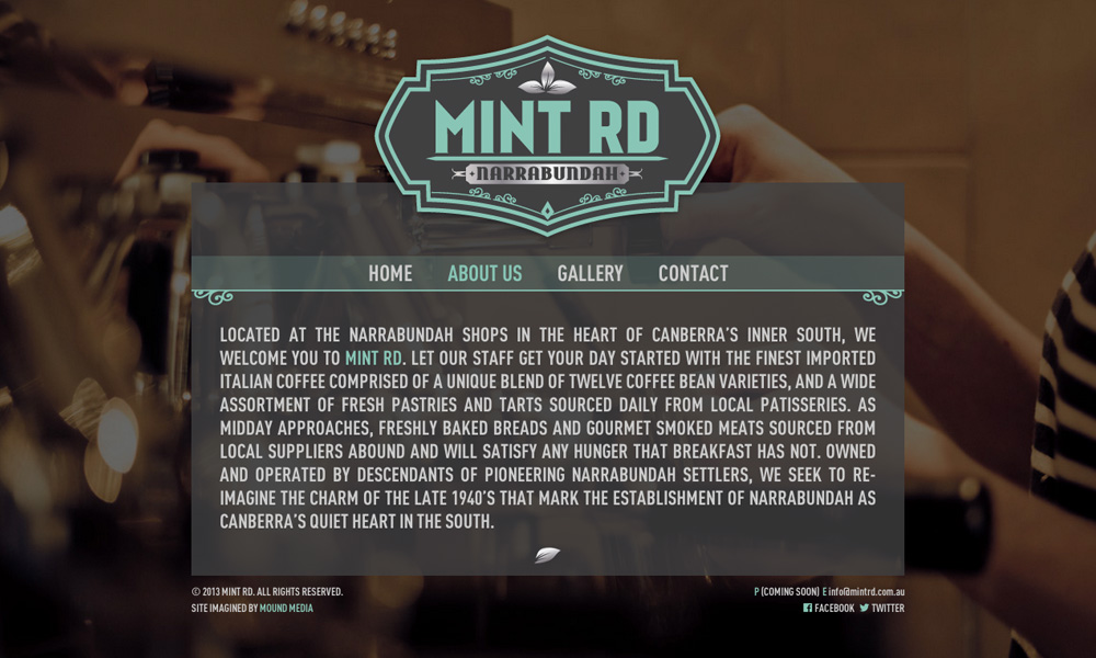 Mint Rd is a cafe located in Narrabundah, Canberra that offers fine Italian coffee, fresh pastries and sandwiches. The project involved full design and development of the website.