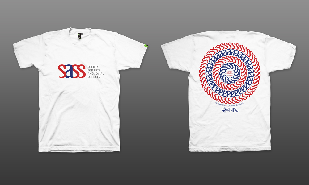 This project involved the design and production management of various t-shirts for the Australian National University's Society for Arts and Social Sciences (SASS).