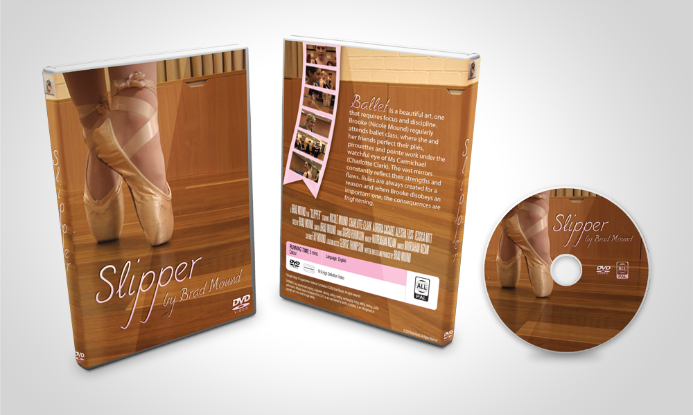 This project involved full design of the DVD cover and disc for the short film, Slipper.