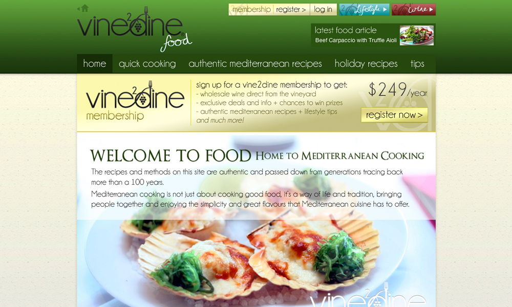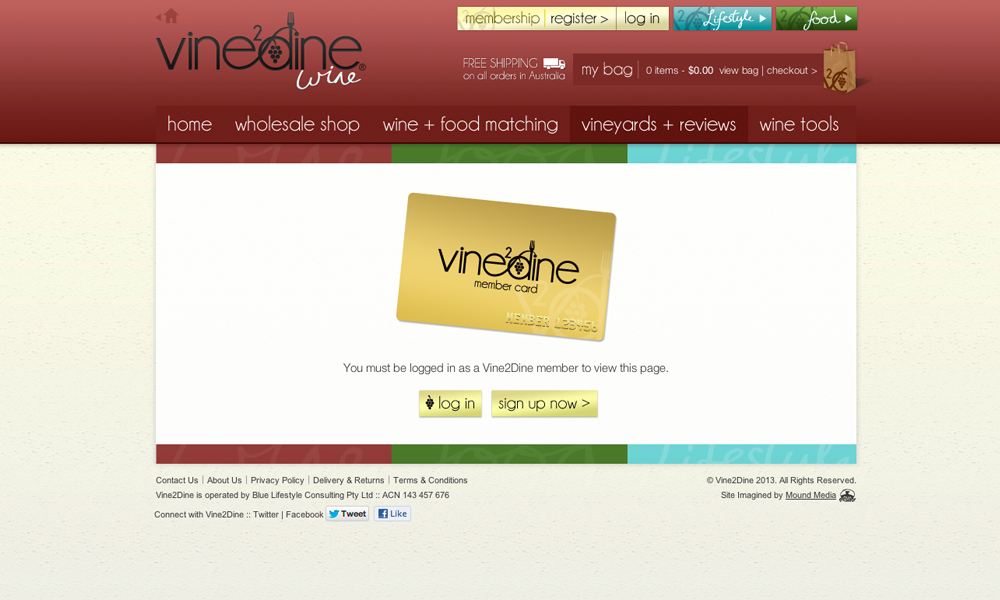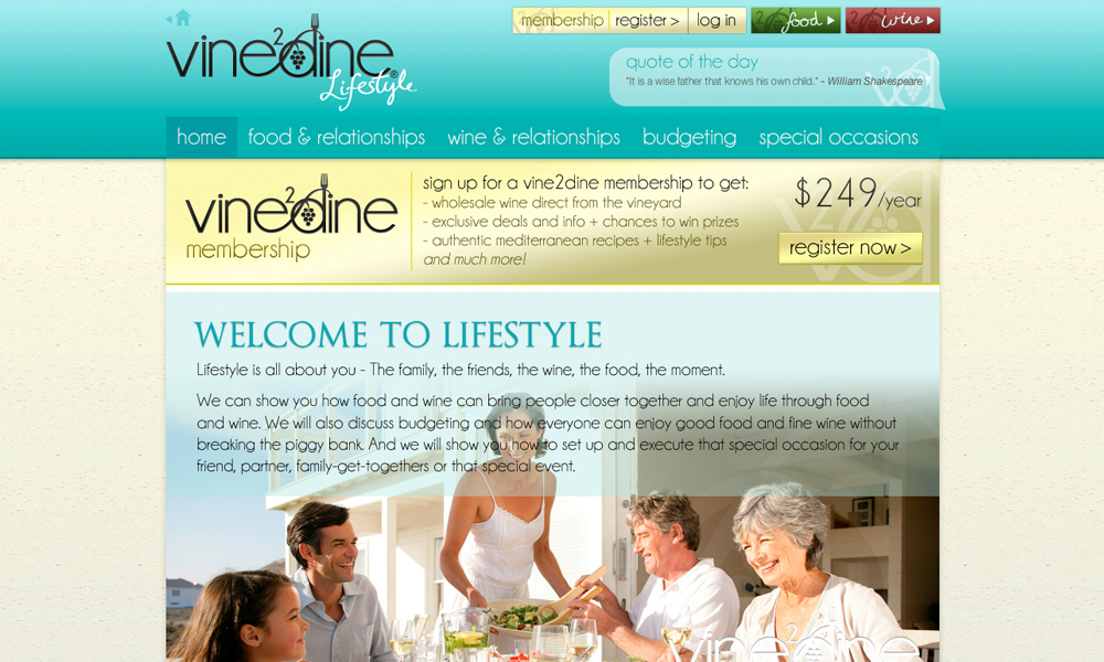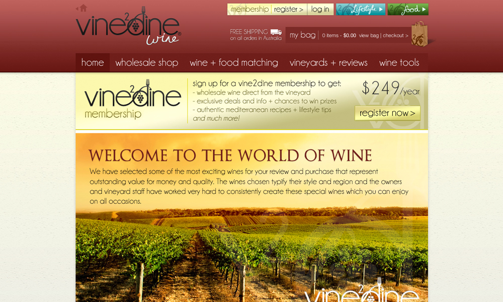Vine2Dine is a wine, food and lifestyle website exclusively for members. The project involved design and development of three sub-websites with everything from a wholesale shop to member management.