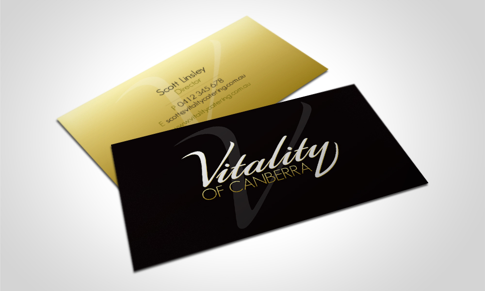 These business cards include a gold coloured back to represent the authenticity and quality represented by Vitality of Canberra.