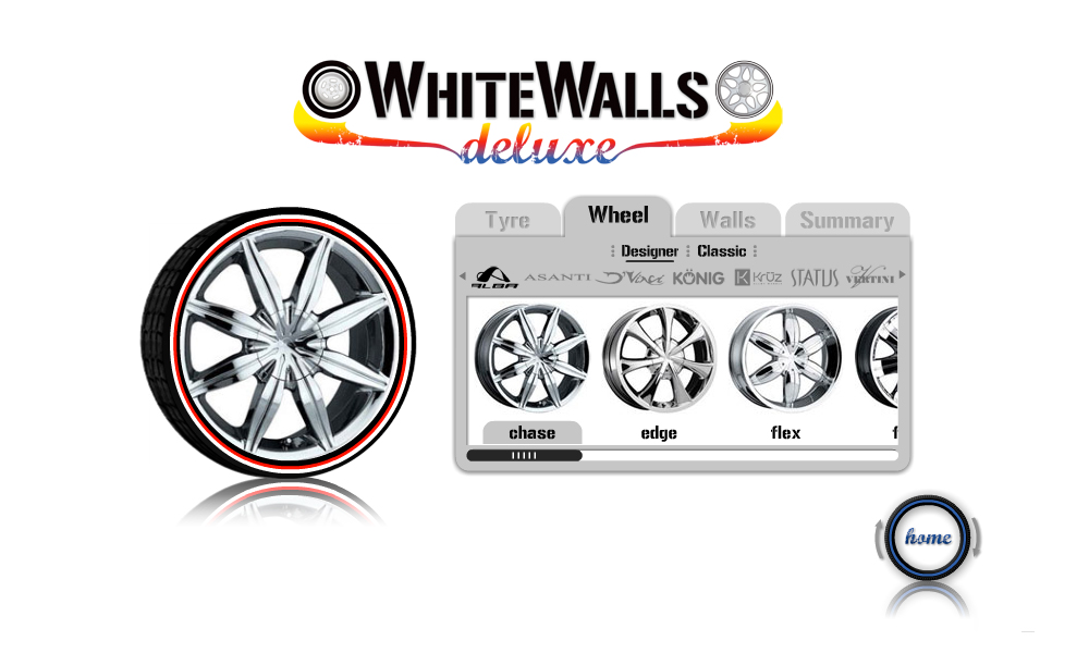 WhiteWalls Deluxe is premium tyre whitewalling business. This project invloved the full design and development of a Flash website including a unique navigation system, gallery and tyre builder.
