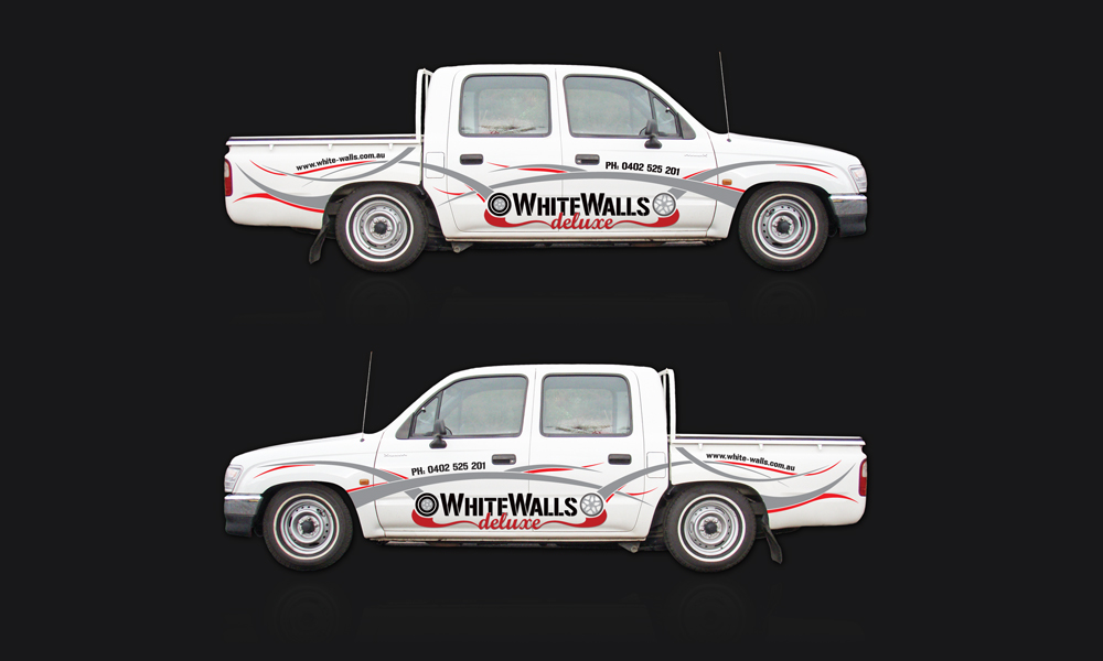 WhiteWalls Deluxe is premium tyre whitewalling business. This project included the design of a full-body car graphic for the WhiteWalls Deluxe vehicle.